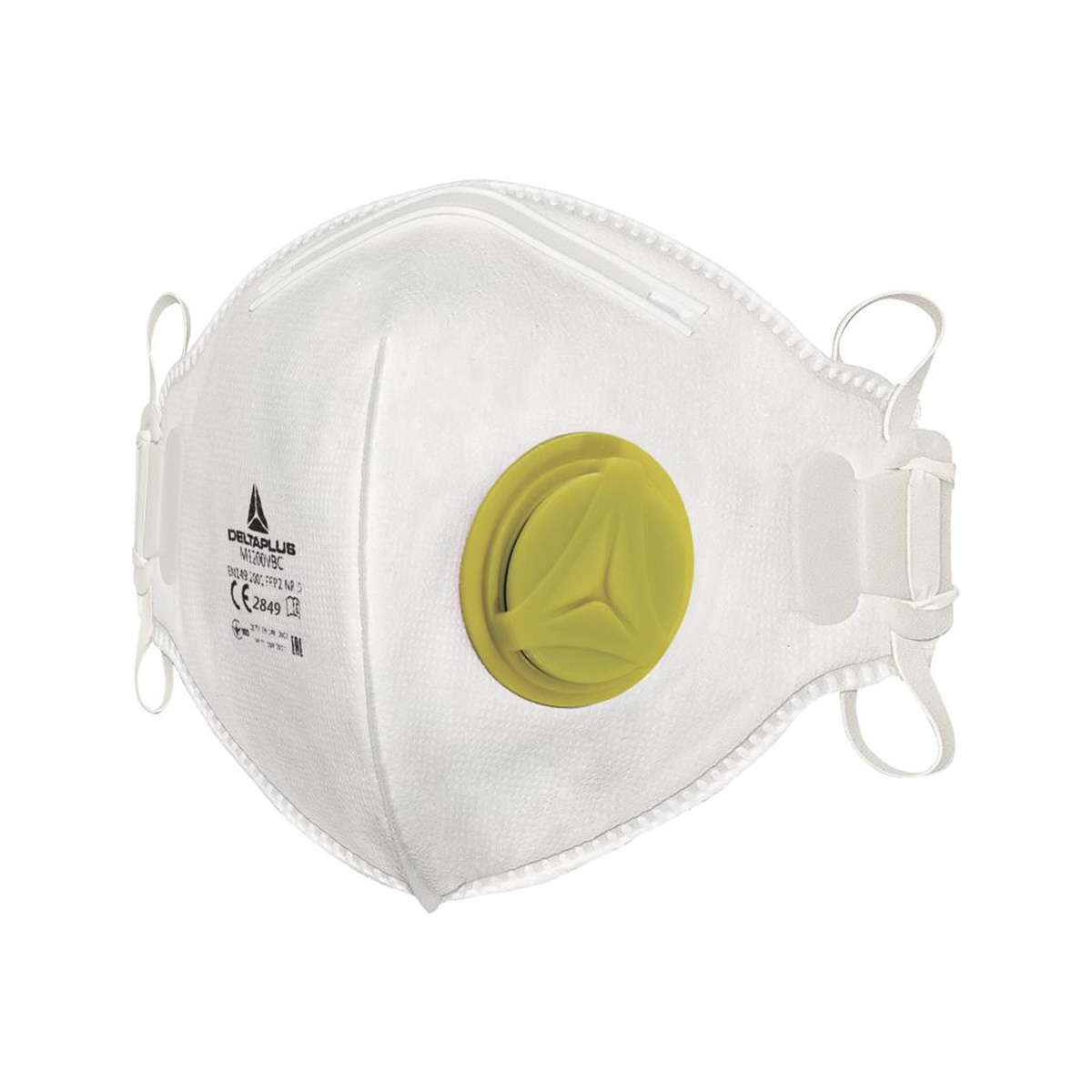 Η μάσκα προστασίας μιάς χρήσης Disposable Vertical Folding Mask FFP2 (with valve) M1200VB της Γαλλικής εταιρείας Delta Plus είναι σχεδιασμένη για να προσφέρει άριστη απόδοση και άνεση στο χρήστη. Κατασκευασμένη από μαλακή μη πλεκτή συνθετική ίνα καλύπτει χωρίς να ερεθίζει μύτη, στόμα και πηγούνι, φιλτράροντας το 94% των αιωρούμενων σωματιδίων στο χώρο εργασίας. Η μάσκα έχει δοκιμαστεί ώστε να διατηρεί χαμηλή αντίσταση στην αναπνοή μετά από πολύωρη χρήση σε περιβάλλον με υψηλό επίπεδο λεπτής σκόνης (Dolomite test). Το εργονομικό σχήμα της δεν περιορίζει το οπτικό πεδίο του χρήστη, καθώς διπλώνει κάθετα, ακολουθώντας τις γραμμές του προσώπου του.