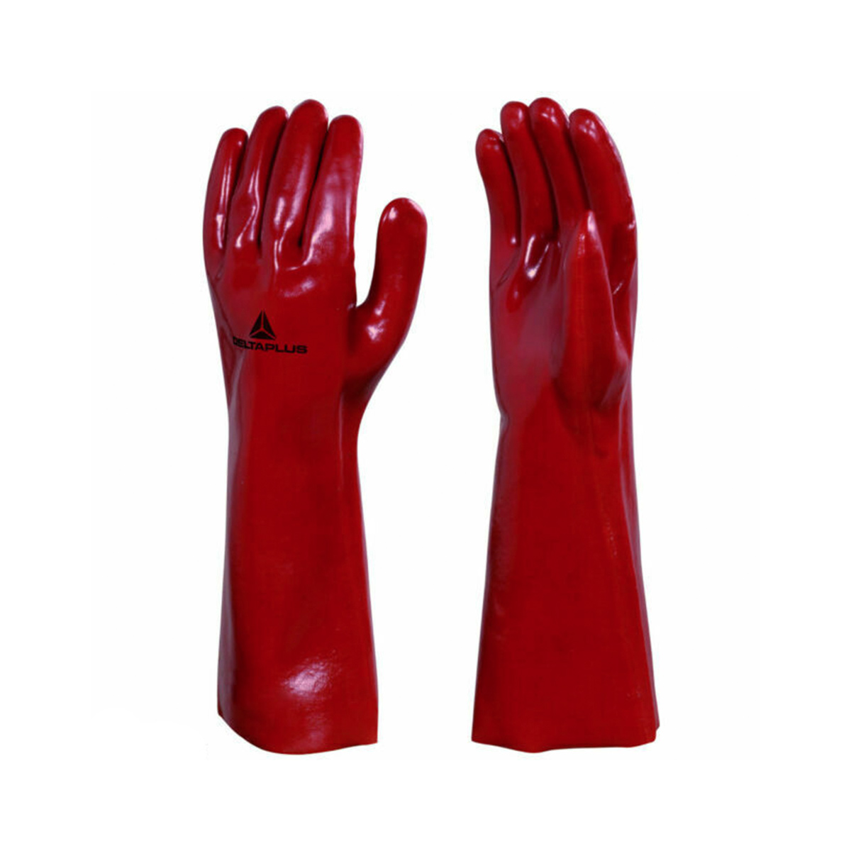 Tα γάντια PVC για χημικά PVCC400 PVC Gloves της Γαλλικής εταιρείας Delta Plus με μήκος 40cm για προστασία του πήχη, είναι κατασκευασμένα σύμφωνα με τα πρότυπα EN 21420:2020, EN 388:2016, EN ISO 374-1:2016 και EN ISO 374-5:2016, παρέχοντας αυξημένο επίπεδο ασφάλειας (PPE Cat. IIΙ). Ιδανικά γάντια για μεγάλο εύρος εργασιών βιομηχανικής επεξεργασίας και πολύ ανθεκτικά στα λάδια, στα χημικά προϊόντα και τα παράγωγα του πετρελαίου, προσφέροντας ταυτόχρονα μεγάλη αντοχή στη τριβή.