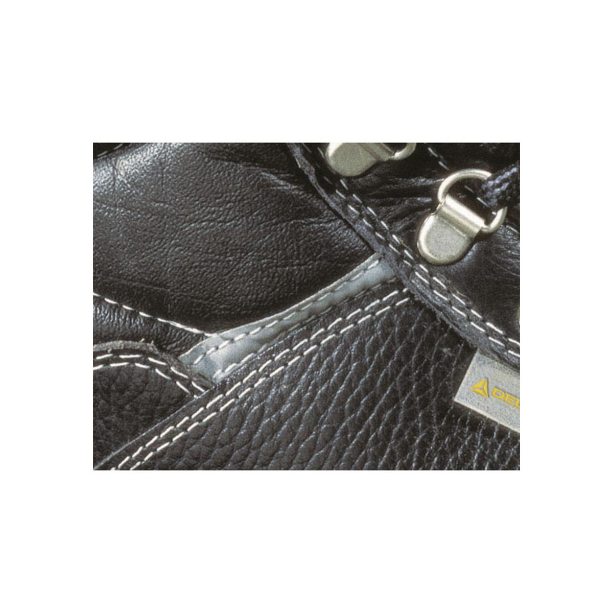 Το μποτάκι ασφαλείας Sault2 S3 SRC της Γαλλικής εταιρείας Delta Plus, είναι σύμφωνο με τις απαιτήσεις ΕΝ ISO 20344, 20345 (S3, SRC) και 61340 (ειδική προστασία από ηλεκτροστατικά φαινόμενα). Κατασκευασμένο από ανθεκτικό δέρμα μόσχου split, με αδιαβροχοποίηση. Διαθέτει ατσάλινο προστατευτικό δακτύλων και πέλματος για προστασία έναντι διάτρησης. Η αντιολισθητική σόλα του απορροφά τους κραδασμούς και έχει βαθιές αυλακώσεις για να ενισχύεται το κράτημα σε σκάλες. Επιπλέον είναι ενισχυμένη στη φτέρνα και στο μπροστινό της μέρος, και ειδικά διαμορφωμένη ώστε να ελαττώνεται η πιθανότητα να σκοντάψει ο χρήστης όταν κινείται. Λόγω της τεχνολογίας PANOFLEX® με την οποία είναι φτιαγμένο, εξασφαλίζεται πιο εύκολη κάμψη, πιο άνετο περπάτημα και λιγότερη κόπωση. Επίσης φέρει ανακλαστικές λεπτομέρειες για επιπλέον ορατότητα και ασφάλεια κατά την εργασία σε συνθήκες χαμηλού φωτισμού.