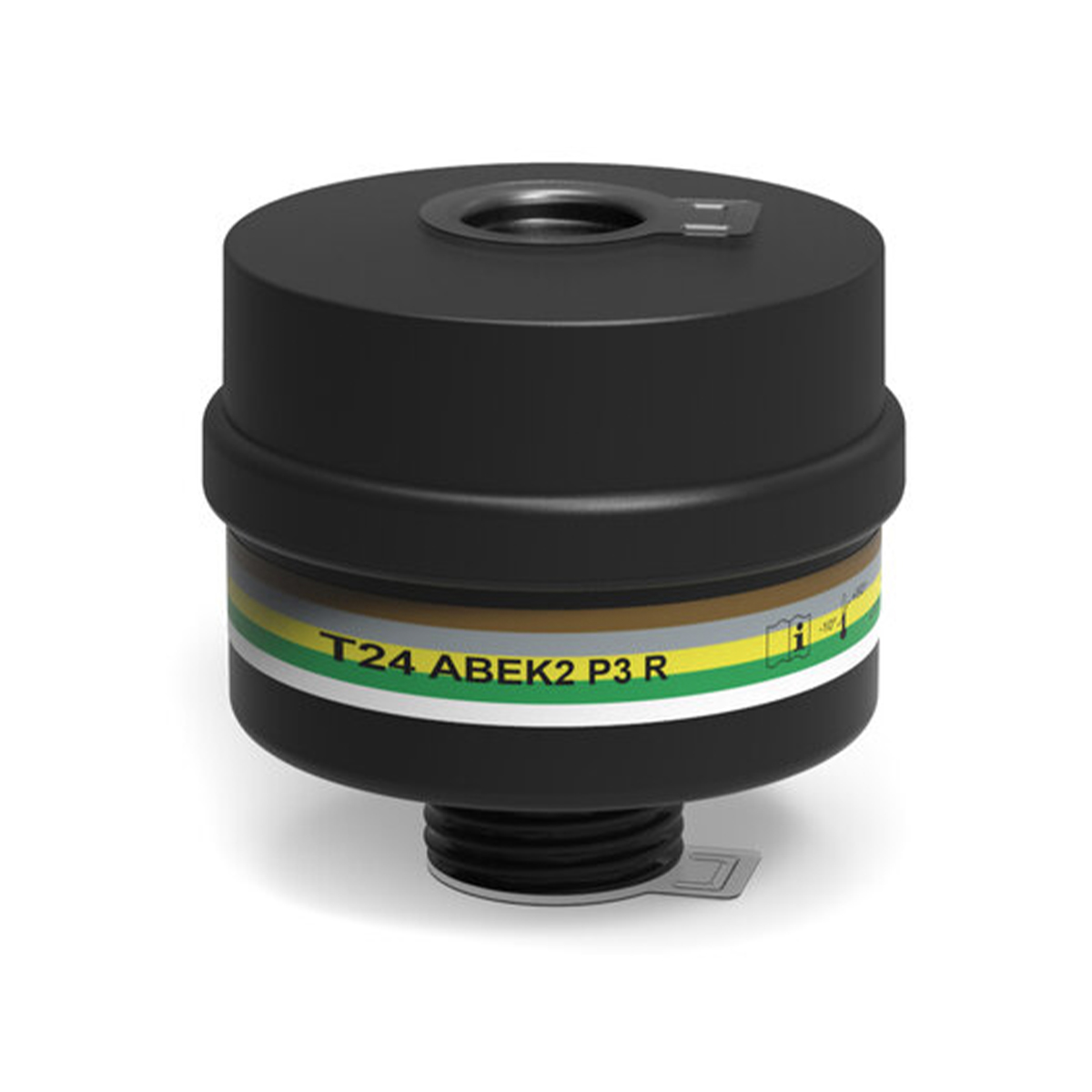 Φίλτρο Series T, T24 – ABEK2 P3 R Filter για τις επαναχρησιμοποιήσιμες μάσκες προστασίας ολόκληρου προσώπου Series 3000 της Ισπανικής εταιρείας MPL. Παρέχει αποτελεσματική προστασία από οργανικά, ανόργανα και τοξικά αέρια και ατμούς, από την αμμωνία και τα παράγωγά της και από σωματίδια, σκόνες, αναθυμιάσεις, καπνό και μικροοργανισμούς. Ιδιαίτερα το φίλτρο σωματιδίων (P3) βαθμολογείται στην υψηλότερη κατηγορία προσφέροντας απόδοση φιλτραρίσματος 99,95%. Με εξαιρετική απόδοση και σύμφωνο με τις απαιτήσεις των ευρωπαϊκών πρότυπων EN 14387 και EN 143:2000. Απαραίτητο σε όσους έρχονται σε επαφή με επικίνδυνες ουσίες (χημικά, απορρίμματα, λύματα κλπ.), κατά τις εργασίες τους.