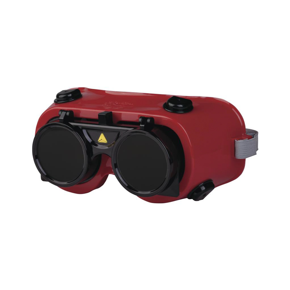 Τα γυαλιά προστασίας οφθαλμών τύπου goggles TOBA 3 T5 Flip-Up Welder’s Goggles της Γαλλικής εταιρείας Delta Plus διαθέτουν σκελετό από εύκαμπτο PVC με έμμεσο αερισμό. Οι εσωτερικοί φακοί είναι διαφανείς, ειδικά επεξεργασμένοι ώστε να μην χαράσσονται και να μην θολώνουν, ενώ οι εξωτερικοί φακοί έχουν βαθμίδα σκίασης 5 και είναι τοποθετημένοι σε επιπρόσθετο ανοιγόμενο πλαίσιο τύπου κλαπέ. Ο ελαστικός τους ιμάντας μπορεί να ρυθμίζεται ώστε να εφαρμόζει τέλεια στο κεφάλι του χρήστη. Αποτελούν ένα απαραίτητο μέσο για την ασφάλεια των συγκολλητών, σε ιδιαίτερα προσιτή τιμή.